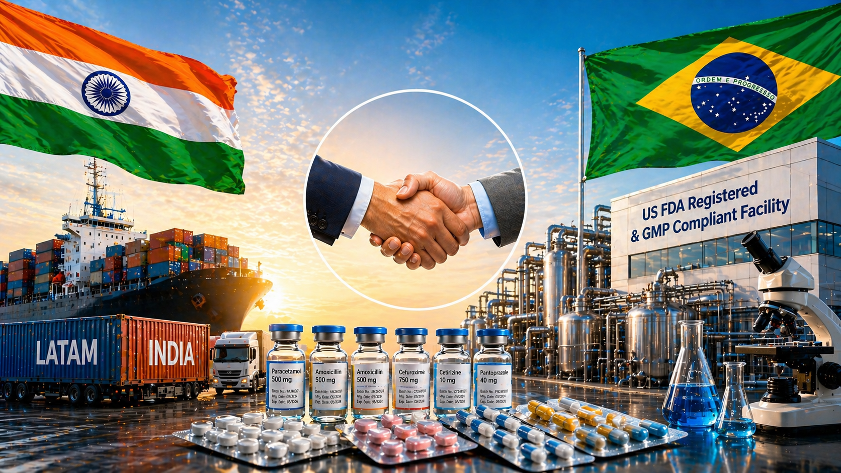 Exportação de produtos acabados para a LATAM. Formulações indianas, registradas junto à ANVISA, COFEPRIS, INVIMA e outros reguladores regionais, podem preencher lacunas em licitações públicas e canais privados, especialmente em oncologia, cardiovascular, antidiabéticos e anti-infecciosos [5].
