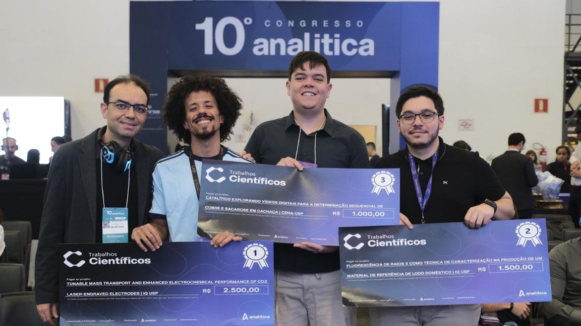 Em segundo lugar, ficou o estudo de Higor Oliveira: "Fluorescência de raios X como técnica de caracterização na produção de um material de referência de lodo doméstico”. E em terceiro lugar, o projeto “Catalítico explorando vídeos digitais para a determinação sequencial de cobre e sacarose em cachaça”. O cobre é um contaminante que pode causar problemas de saúde quando consumido em altas quantidades e a sacarose muitas vezes é usada além do valor limite estabelecido para mascarar o sabor de outros componentes que podem estar presentes na bebida. A ideia é propor um método acessível e assegurar aos pequenos produtores de cachaça uma alternativa de baixo custo que mantenha um controle de qualidade eficiente.